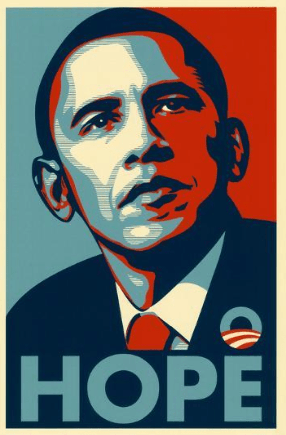 At first glance, there is a lot going on in this image. The fact that it has the word “hope” in big, blue capital letters makes sure the viewer gets the right message that the creators were trying to portray. The man in the picture is our 44th president and our first African American President, Barack Obama. When Obama was running for office in 2008 he included this image in his campaign. Obama is pictured in the “three-quarters view”, meaning he is not turned directly towards the person viewing the image and making eye contact, making him look confident and powerful. At first glance, the bright colors and the contrast makes the image very eye-catching and interesting to look at. But these colors weren’t just chosen to catch someone’s attention, they were chosen meticulously to provide deeper meaning in the image. These colors are obviously the nation’s colors and represent patriotism, but they also represent the combination of democrats and republicans that make up America. In Obama’s eyes, they can coexist and he can be everyone’s present and help accomplish everyone’s goals, not just the democrats. In 2008 only a few days before the primary elections, a lot of the democratic votes were going to Hillary Clinton. It was vital that Obama win over the democrats and the election as well. A very popular and progressive street artist, Shepard Fairey, wanted to help Barack Obama succeed in the upcoming elections. With the approval of campaign managers he created the impactful image below. A lot of the pictures and slogans that candidates use for their political campaigns can be very negative and focus on what America or even specific individuals are doing wrong. For example, Trump’s slogan “Make America Great Again” is very negative. This type of campaigning often makes people react in the opposite way you would want them to. It could anger individuals or drive them away, resulting in less votes for that candidate. On the other hand, Obama’s image is positive. It doesn’t imply anything and it is hopeful. The way he presents his campaign tells a lot about himself, many people often referred to him as America’s most down to earth and sweet president. We are lucky enough to live in a country where there are multiple candidates running for office and we have a say in whether we like them, don’t or are impartial. This freedom of ours leads to candidates having to prove their worth to the country. Through speeches, slogans, posters, facebook videos, etc, candidates have to prove to the American population why we should vote for them. So, naturally, the intended audience for this image is every US citizen. The original picture that Fairey created had the word “PROGRESS” but after some concern with how people would interpret it, it was later changed to “HOPE”. This word can have a lot of different meanings so it opens up the viewers imagination and lets them put their own meaning to it in a way. This image spreads hope for the future, hope for the present and hope that Americans can work together to reach their goals.